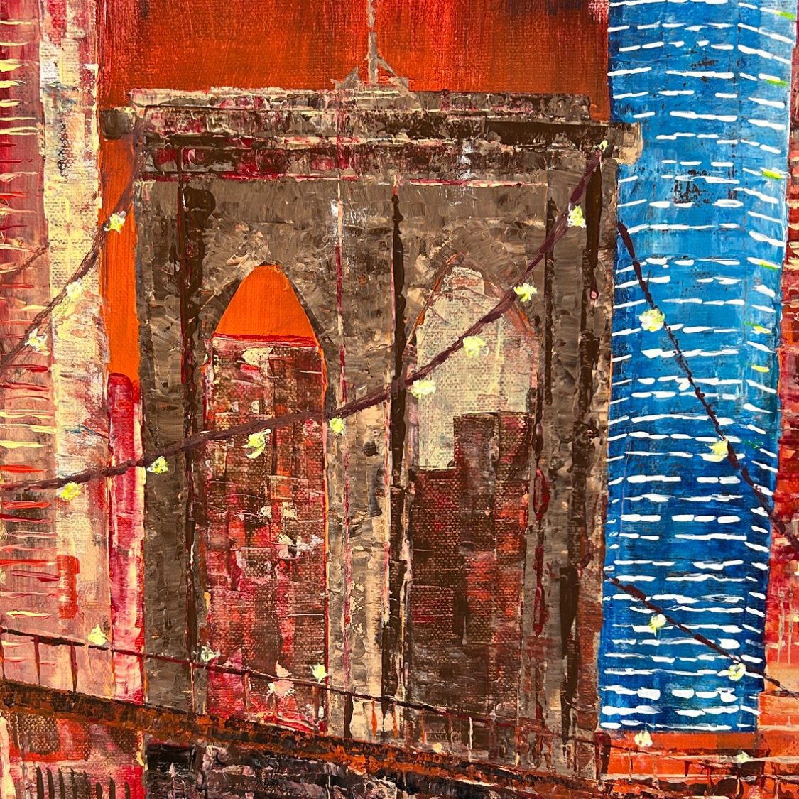 Die ikonische Brücke, die Brooklyn mit Manhattan verbindet, erstreckt sich über den East River und ragt vor der New Yorker Skyline in einem strahlenden Sonnenaufgang empor.